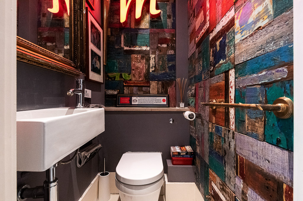 The home has five bedrooms. The master bedroom has a UK super king (6ft wide) bed, plentiful storage space, and is served by an en suite bathroom which comprises a bath and shower stall. On the top floor are two bedrooms, one with two singles set up as a bunk bed; the other has a UK super king (6ft wide) configurable as twins and a bathroom with a separate shower. A fourth bedroom with a UK king-size (5ft wide) bed and a shower room. On the lower ground floor, the 5th double room with a  UK super king (6ft wide) and shower room has its entrance and is linked to the house.
