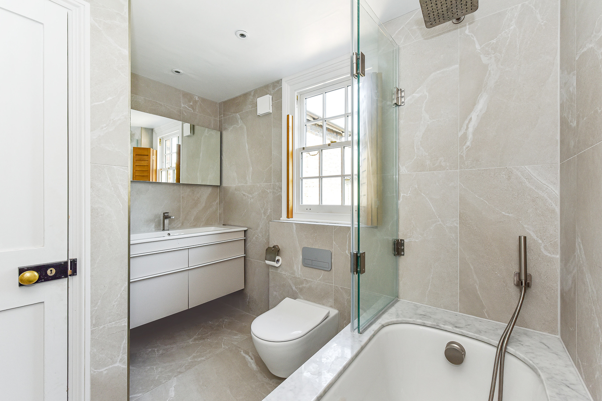 The ground level comprises a large comfortable living and dining room, which adjoins the bright conservatory kitchen and leads onto an outdoor private patio and garden. All three bedrooms are located on the first floor of the home. The master suite has a king-size (5ft wide) bed and en-suite bathroom with a separate bath and shower. The second room has a single bed and a bunk bed, the third with a single bed. Both rooms are serviced by a bathroom with a bath and shower (combined). There is also an additional WC/cloakroom.The house is accessed at street level and is set over two floors (with stairs between them).