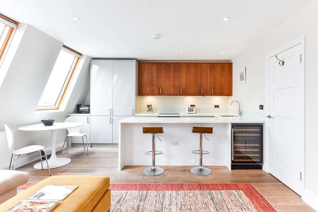 From the tranquil air of the rooftop-level St Luke's Road, it's hard to believe you're just five minutes' walk from the beating heart of Notting Hill. This fantastic apartment welcomes families or couples alike and invites you to explore this vibrant neighbourhood, the more expansive city or relax - and perhaps even work - in this peaceful setting. Stairs lead up to the apartment entrance, and then an internal flight takes you to the main level, with the two double bedrooms and family bathroom positioned off the hallway.