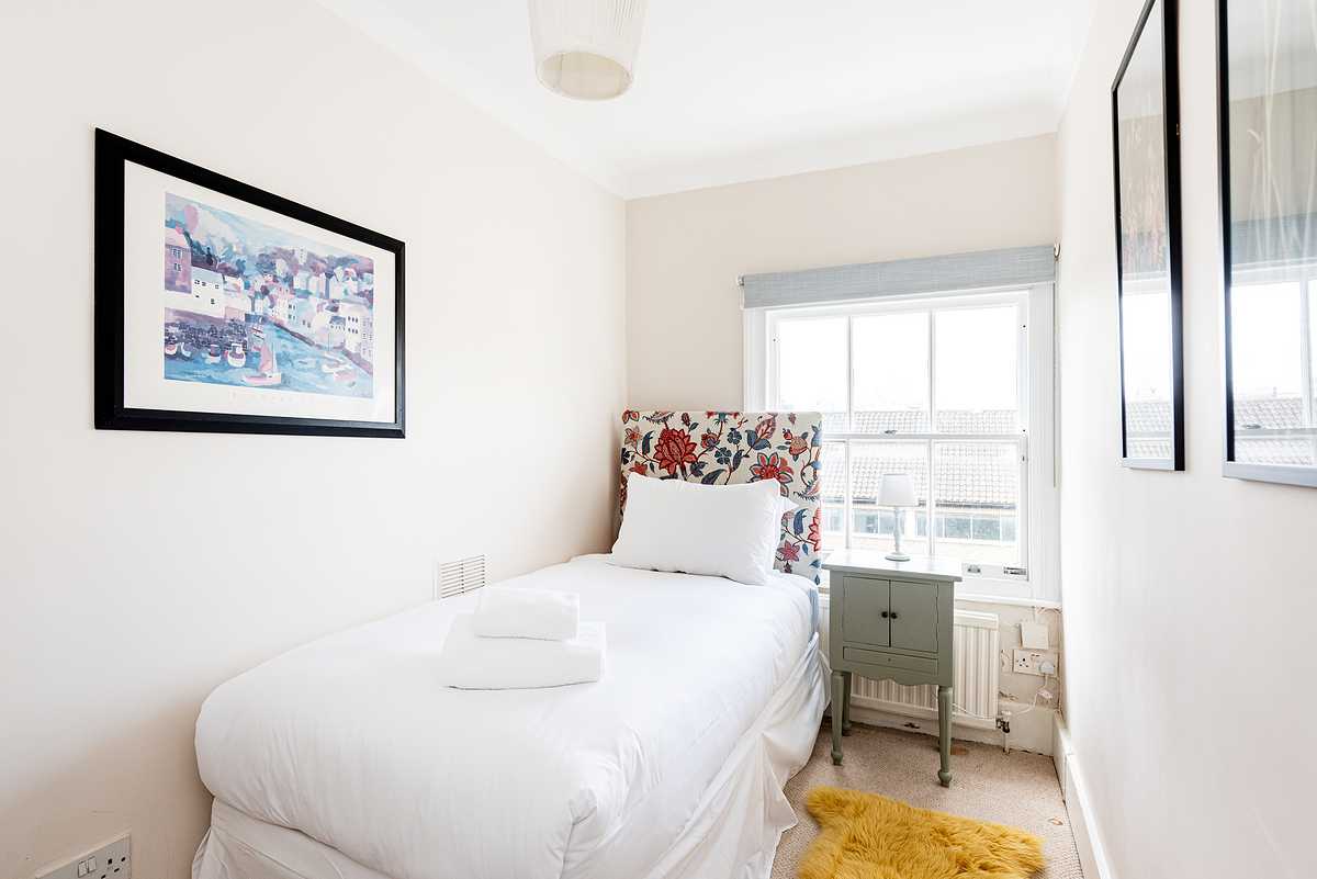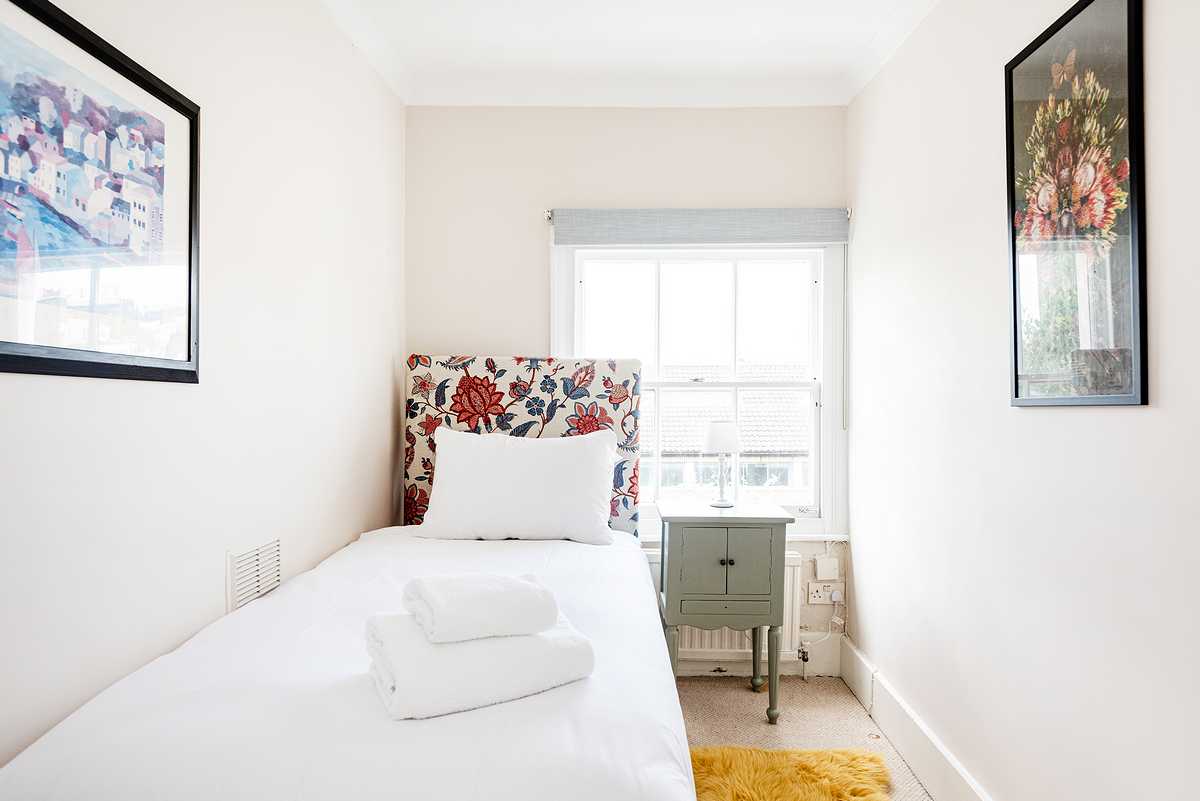 On the fourth floor, you’ll find three bedrooms. The master bedroom, furnished with a UK king-sized bed (150 cm wide), invites you to relax and unwind after a day of adventures. The second bedroom also features a UK king-sized bed (150 cm wide x 200 cm), providing generous space for a restful night's sleep. The third bedroom offers a cosy UK single bed (90 cm x 190 cm), perfect for a guest or a child. These bedrooms share a bathroom with a shower stall on the third-floor landing.