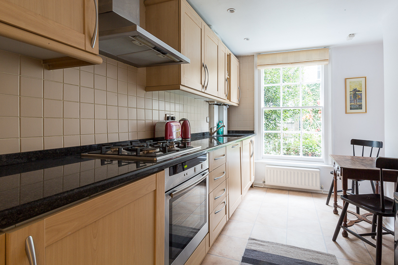 A bright and spacious living room featuring a comfortable sofa and a pair of wool tweed-covered armchairs will make you feel instantly warm and relaxed as you return home from a long day of London sightseeing. The kitchen is fully equipped with all you might need to whip up a lovely home-cooked supper or a leisurely breakfast to enjoy at the large dining table, which will seat six, or perhaps you'd like to enjoy your morning coffee and listen to the birds chirping away outside on the private patio.
